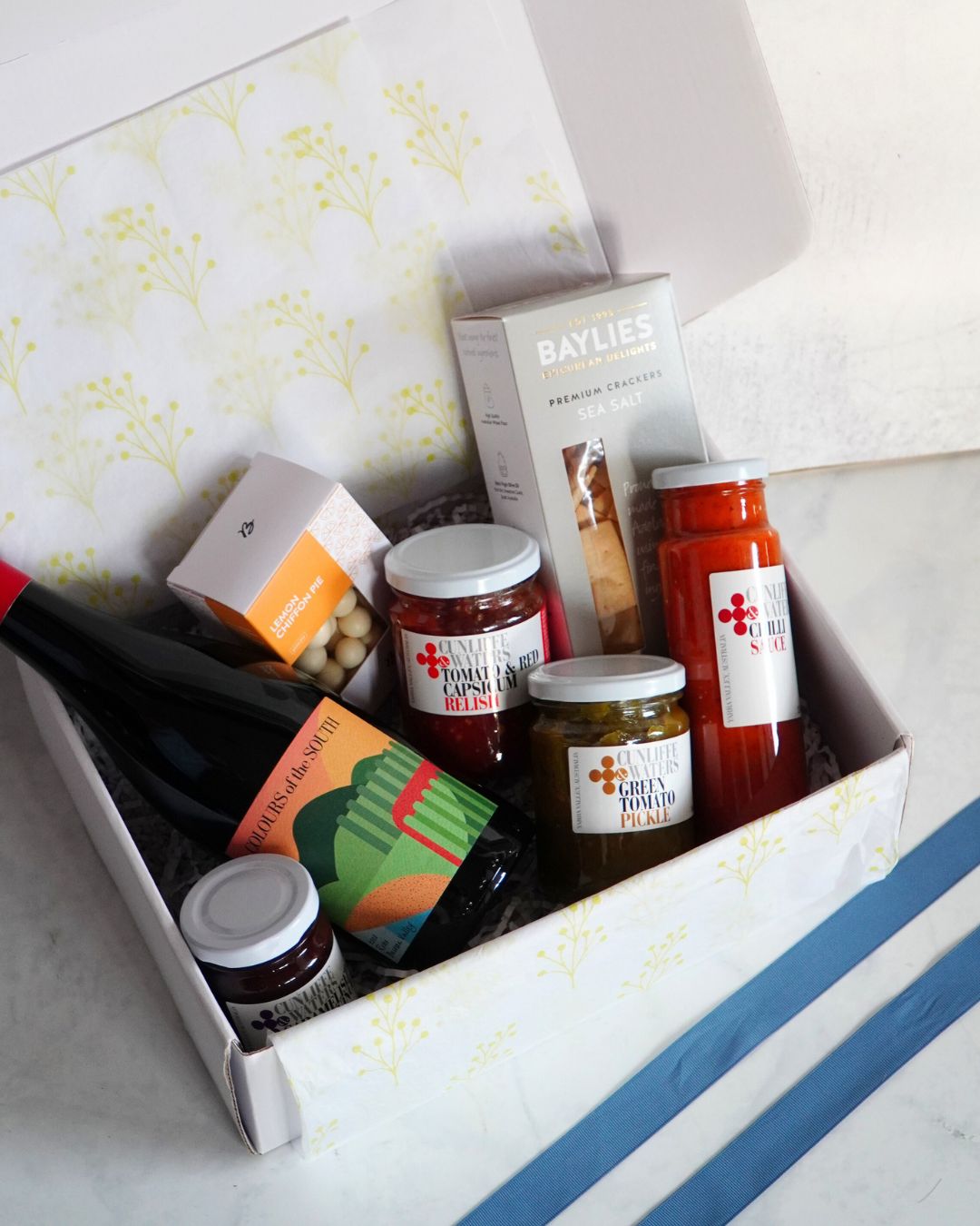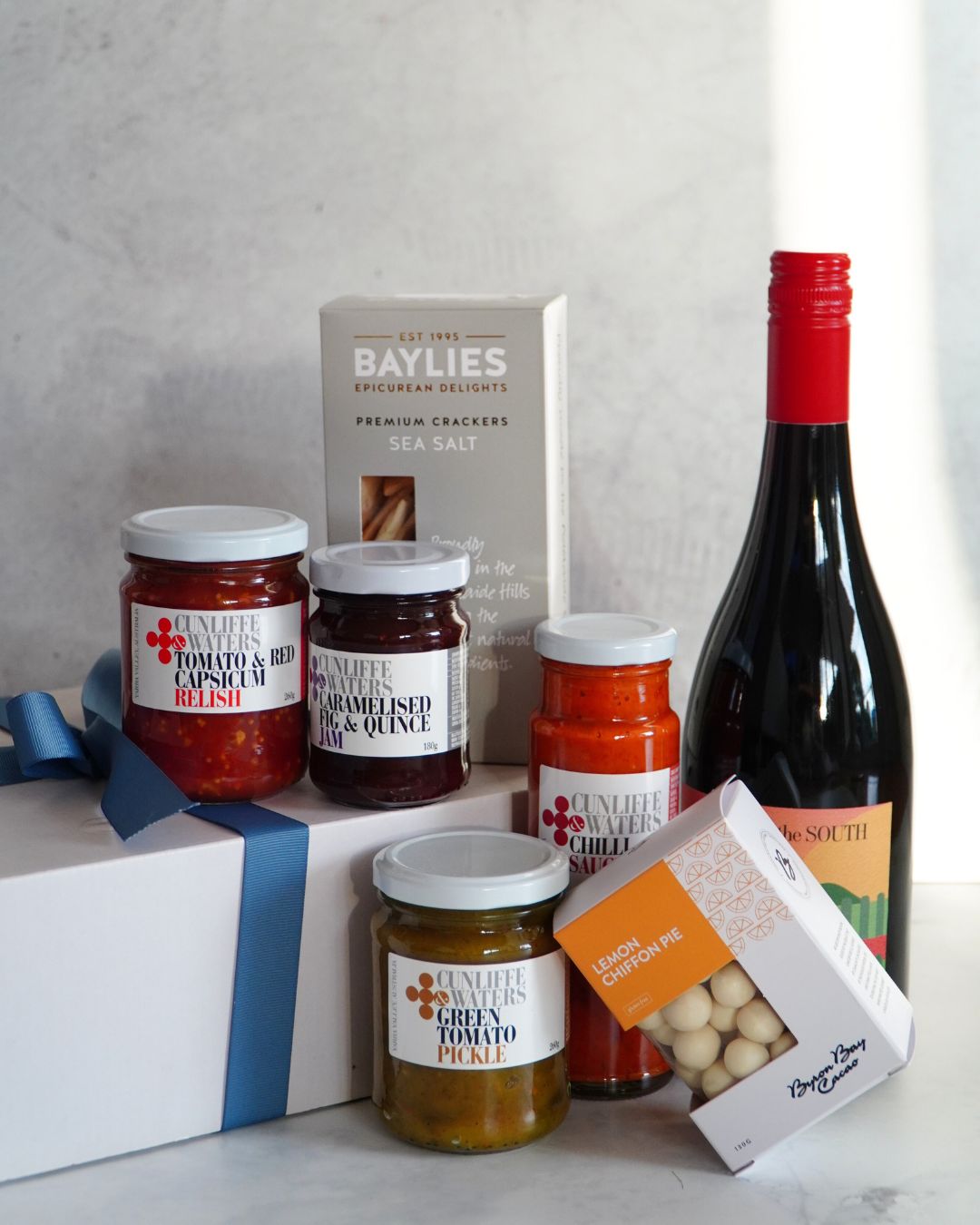 An Australian-made wine and gourmet gift box featuring artisan crackers, chocolates, pickles and relishes. Perfect for sharing, celebrating and gifting.